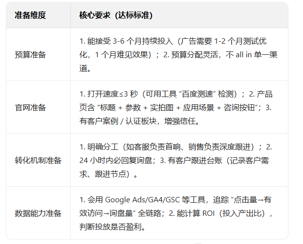 最后提醒:广告不是企业的 “救命药”,而是 “助推器”。只有当企业自身基础(产品、官网、转化)扎实时,广告才能帮你 “快人一步” 拿到客户;若基础薄弱,不如先花 1-2 个月补短板,等准备到位再投 —— 此时每一分广告预算,都能带来更高回报。